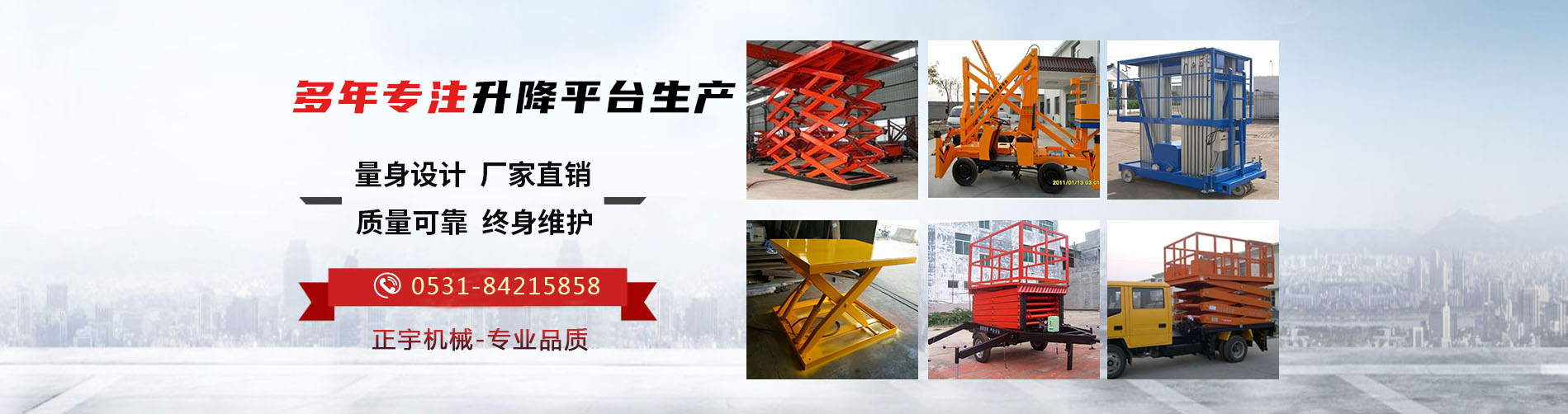 濟(jì)南正宇升降機(jī)械有限公司是一家集設(shè)計(jì)、研發(fā)、生產(chǎn)和銷(xiāo)售于一體的制造型企業(yè),生產(chǎn)液壓升降機(jī)械和高空作業(yè)平臺(tái),公司處于素有泉城美稱(chēng)的山東省濟(jì)南市,坐落于濟(jì)北開(kāi)發(fā)區(qū)。優(yōu)越的地理位置和便利的交通給公司的發(fā)展帶來(lái)了充分的條件。正宇液壓技術(shù)力量厚,工藝流程先進(jìn)合理,檢測(cè)手段齊全。目前主要產(chǎn)品有:高空作業(yè)平臺(tái)、登車(chē)橋、固定升降機(jī)、移動(dòng)升降機(jī)以及鋁合金升降機(jī)等等。公司產(chǎn)品具有設(shè)計(jì)新穎、結(jié)構(gòu)合理、升降平穩(wěn)、載重安全、操作簡(jiǎn)單、維護(hù)方便等優(yōu)點(diǎn)。產(chǎn)品廣泛應(yīng)用于各個(gè)行業(yè),如工礦企業(yè)、生產(chǎn)流水線(xiàn)、鐵路、機(jī)場(chǎng)、車(chē)站碼頭、貨物裝卸升舉、廠(chǎng)房工地、倉(cāng)儲(chǔ)物流、高空設(shè)備安裝等場(chǎng)合。公司以誠(chéng)信、創(chuàng)新、穩(wěn)健為宗旨,以品質(zhì)、完善服務(wù)的理念,迎接市場(chǎng)的挑戰(zhàn)。期待您的咨詢(xún)!